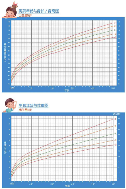 宝宝的身高曲线与标准身高曲线平行,表示生长速度正常;身高曲线平坦,则表示生长缓慢,通常情况下,身高曲线是不会向下的,除非测量的方法不精确。体重曲线与标准体重曲线平行,表示生长速度正常;体重曲线平坦或向下,则表示生长缓慢。